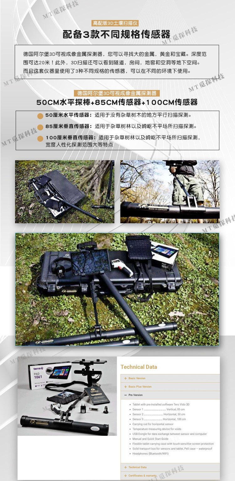 德國(guó)阿爾堡3D可視成像金屬探測(cè)器,您可以尋找大的金屬,黃金和寶藏。深度范圍可達(dá)20米!此外,3D掃描還可以看到隧道,房間,地窖和空洞等地下空間。