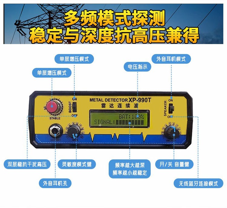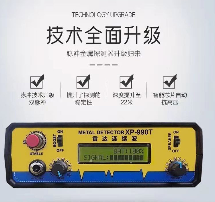 XP990T黑科技脈沖地下金屬探測器連續(xù)波立體框大深探寶器