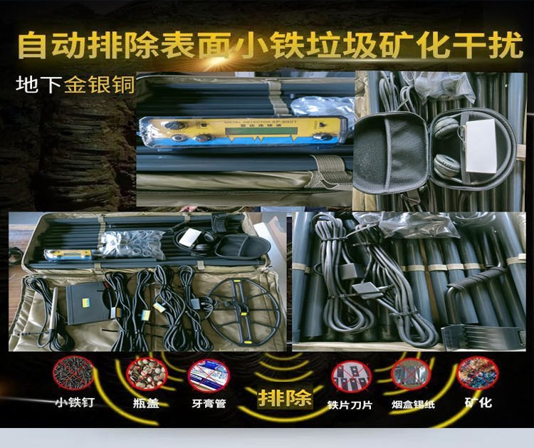升級雙脈沖,智能化識別,一機五用,含四根探測線圈,手持探盤,加長型探棒,無線耳機等,可單框與立體框雙用!更加人性化,探測定位準(zhǔn)確!