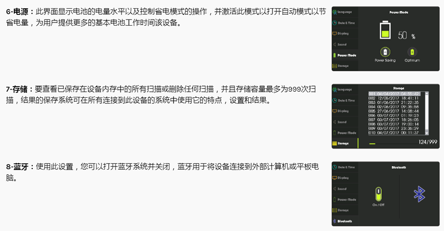 彩色屏幕顯示5英寸大小的結(jié)果和設置,允許用戶控制整體設備設置并顯示搜索結(jié)果和特征。